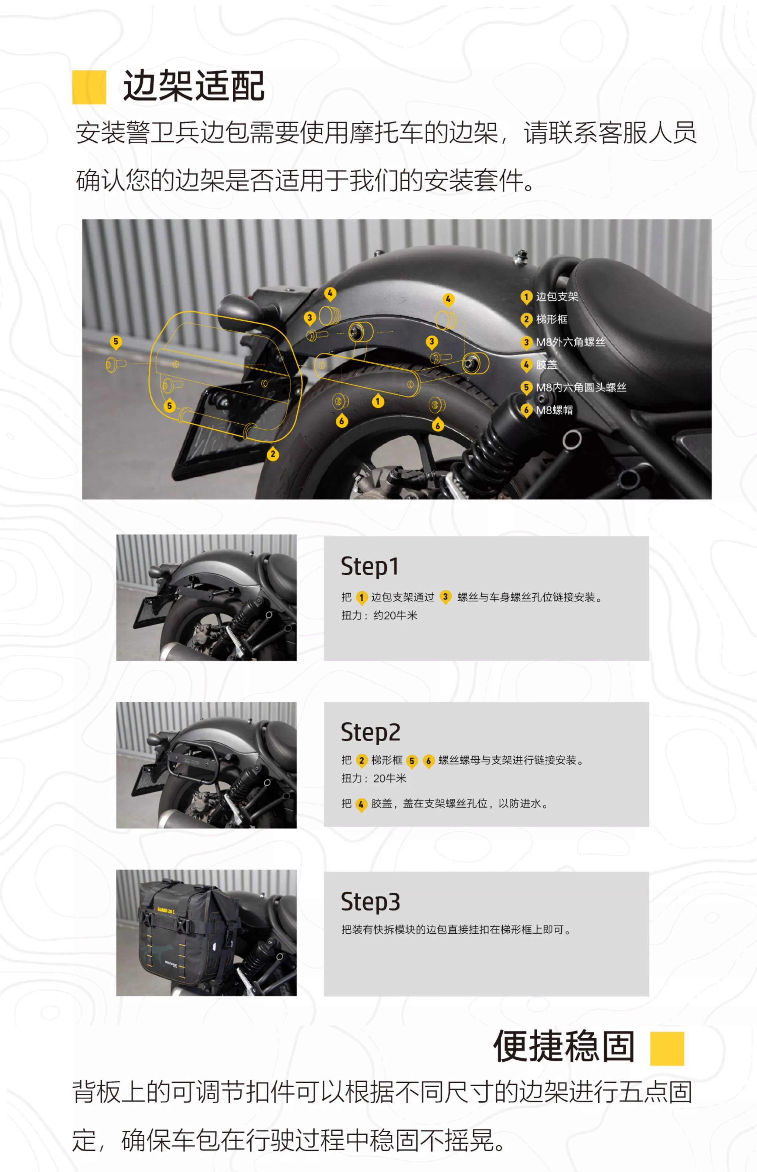 ※本款側包均含快拆配件,對於其他圓管(管徑18~19mm)矩形支架的適用性,請與客服人員溝通確認。