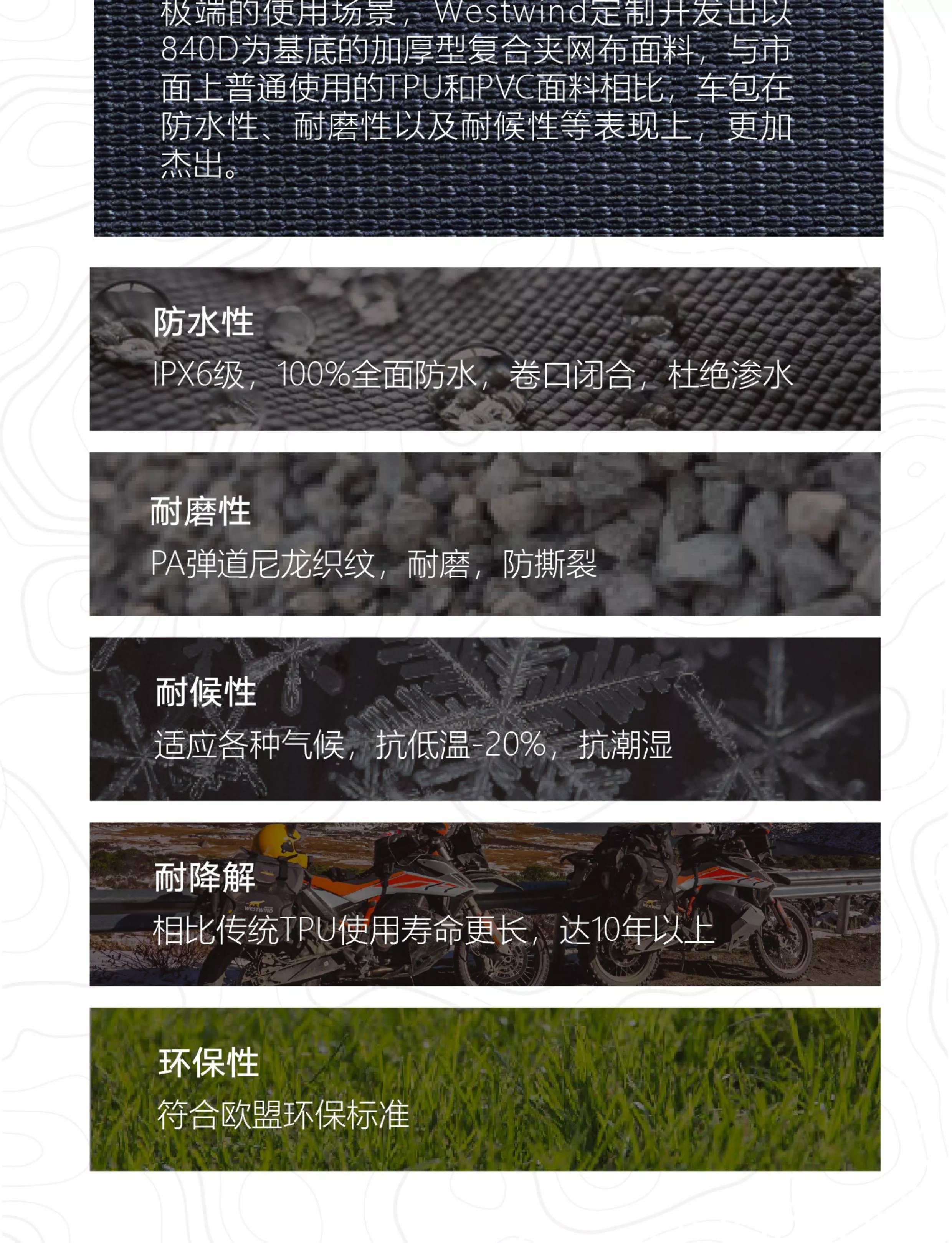 功能:快拆(背架可鎖)、防水、抗撕裂、超耐磨、耐穿刺、耐候